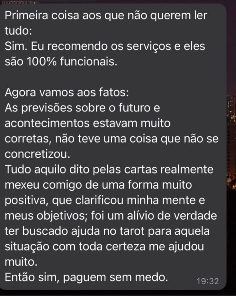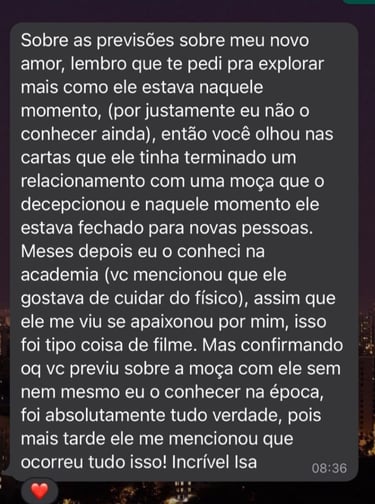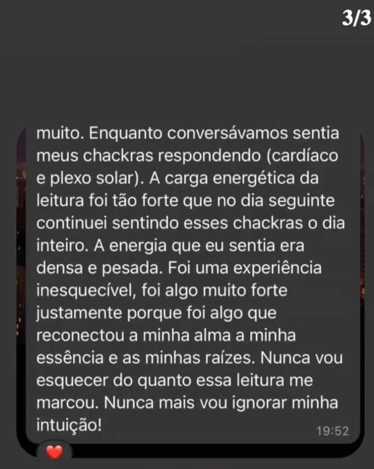 Durante a consulta, é feita uma análise espiritual cuidadosa, onde são observados caminhos, bloqueios, influências espirituais e possibilidades futuras. O objetivo não é criar ilusões, mas trazer entendimento, consciência e orientação real, respeitando o tempo espiritual e o livre-arbítrio de cada pessoa.
