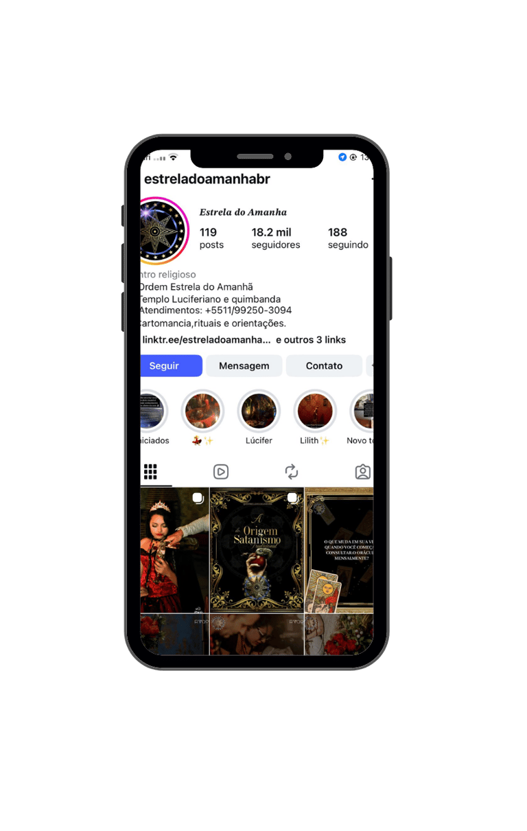 Acompanhe meu trabalho também no Instagram e faça parte de uma comunidade com mais de 18 mil seguidores que confiam, aprendem e caminham junto comigo na espiritualidade. Compartilho conteúdos, orientações, ensinamentos e informações reais sobre Quimbanda, sempre com seriedade, fundamento e respeito.